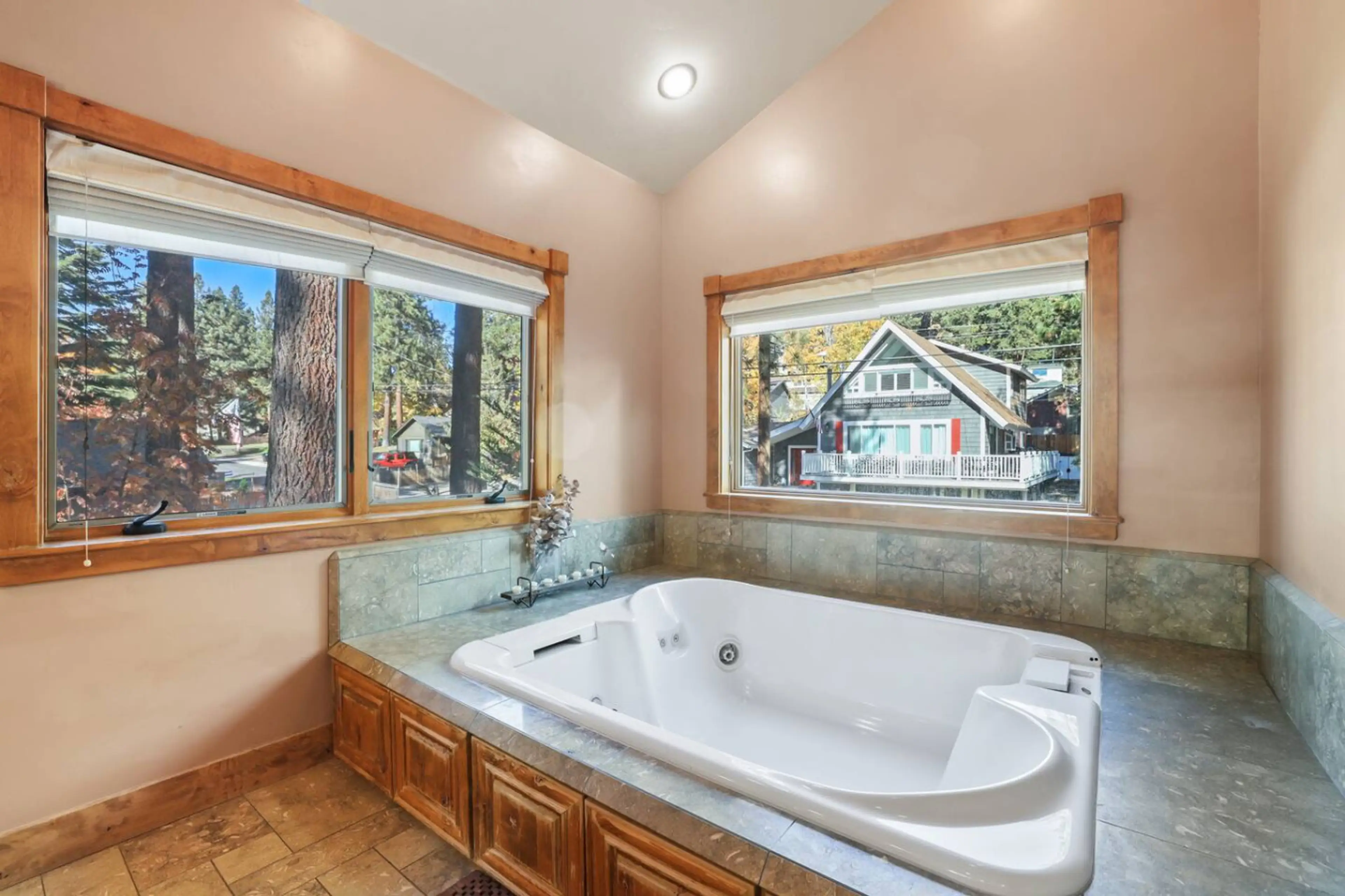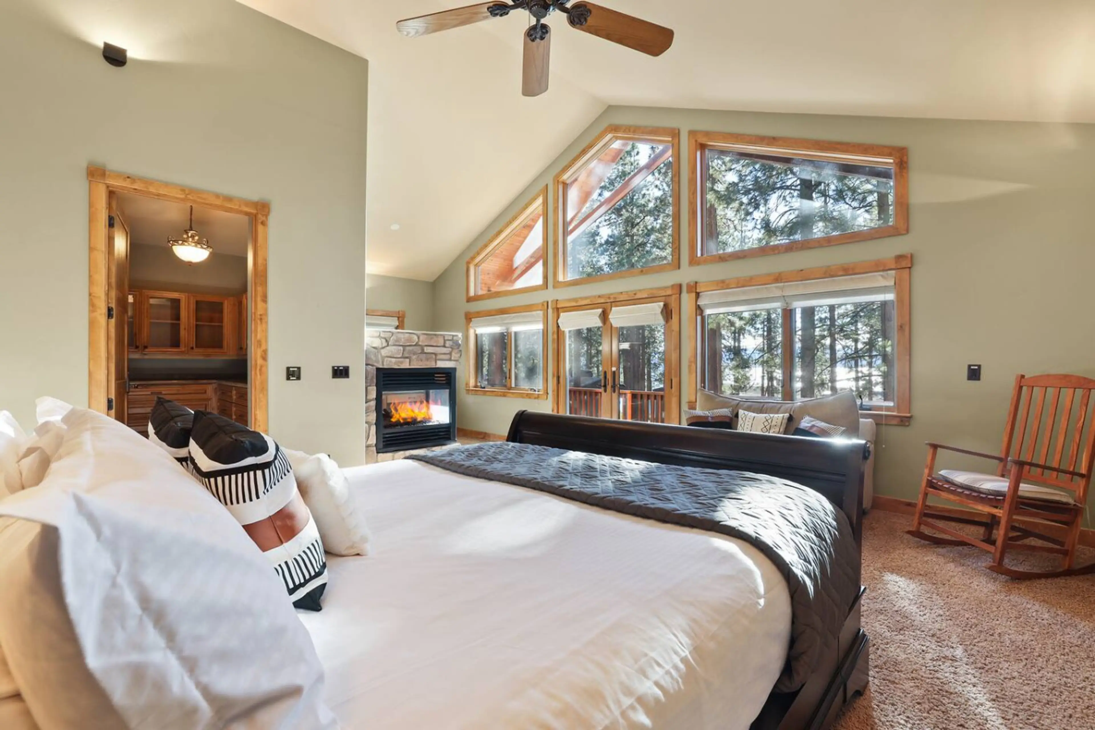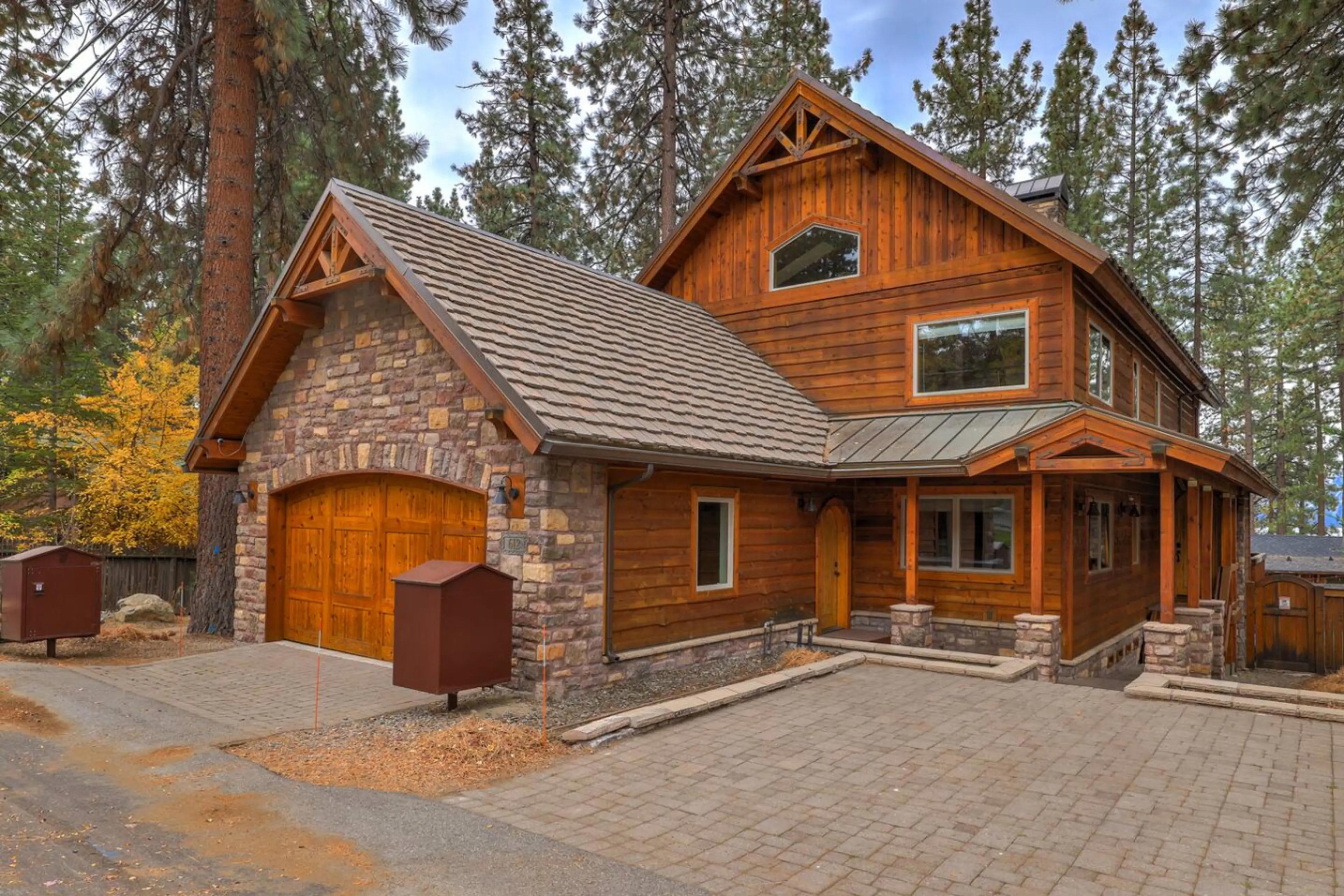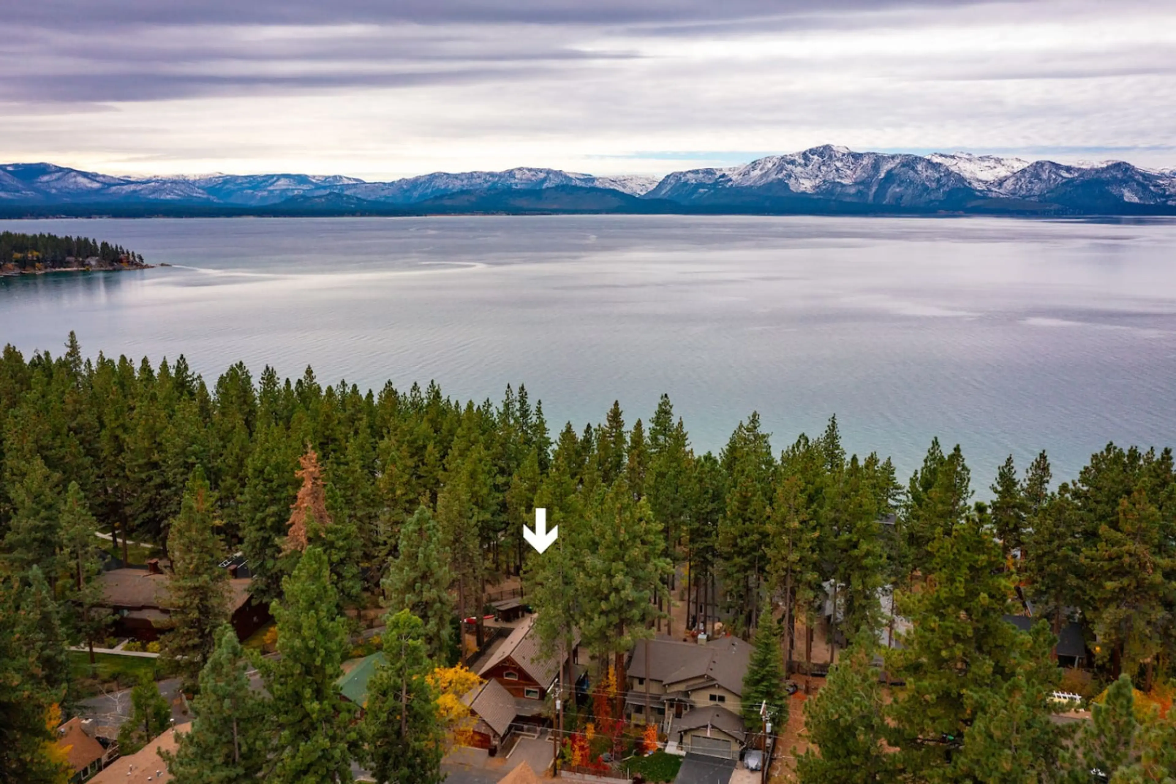 Escape to this stunning chalet-style cabin nestled among the towering pines. Just a 3-minute walk to Marla Bay's beach, this luxurious retreat blends rustic charm with modern comforts. Enjoy Lake Tahoe views from the spacious deck or relax in the private hot tub. Inside, vaulted ceilings, a gourmet ...